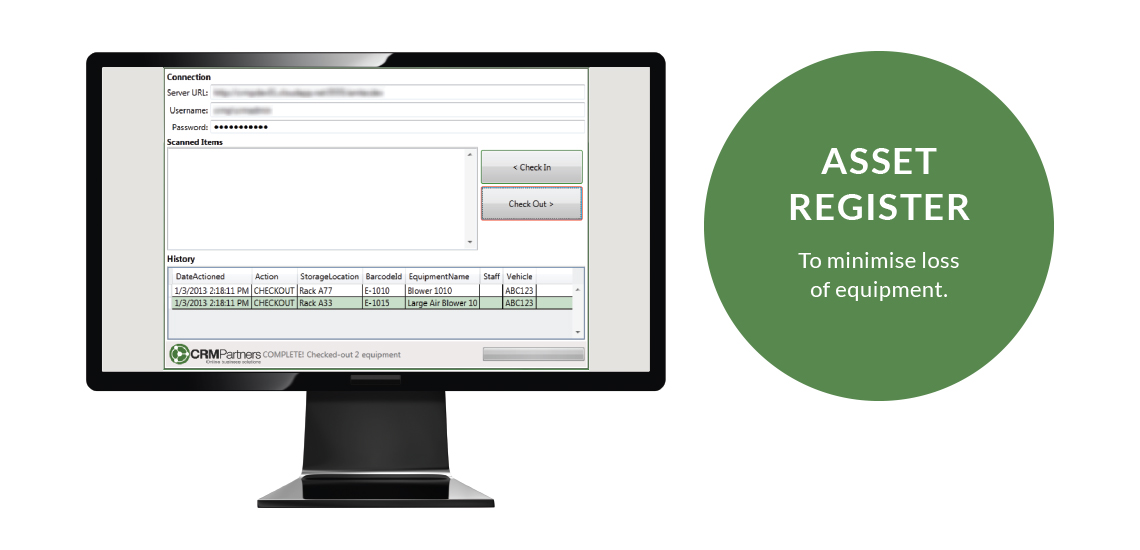 - Asset register for equipment that leave the warehouse